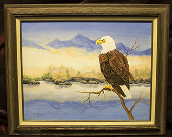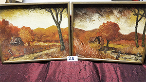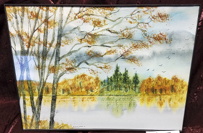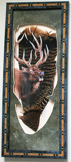 Painted on real Turkey Feathers- 8"x18" framed under glass