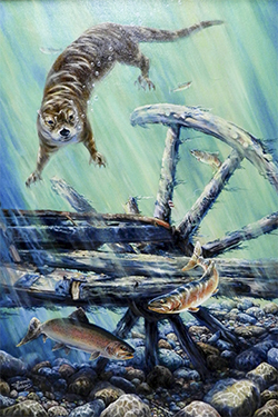 River Otter ( giclee canvas print -16"x20" Framed under Glass) Artist Proof of 50